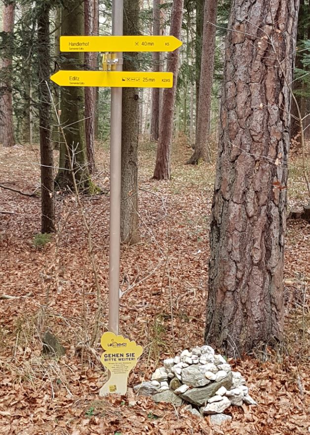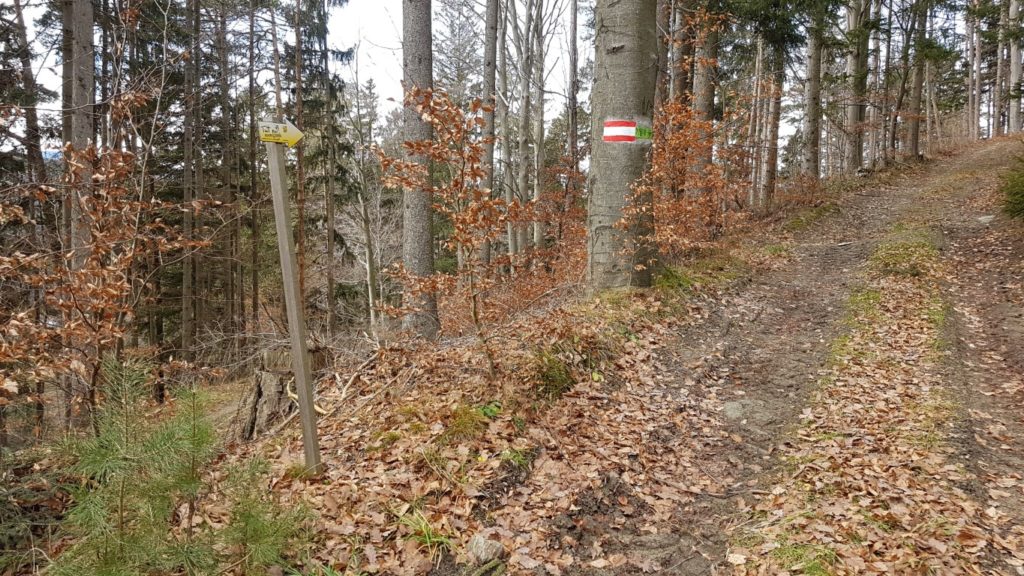 Die Strecke ist (zumindest zu Beginn) nicht beschildert – deshalb die Karte und der GPX-Track ganz am Ende des Kapitels – es handelt sich eigentlich um die offizielle Strecke „Rundwanderweg K2 Bindergraben-Schafferhof“. Es gibt übrigens rund um Edlitz auch noch die gesamte Rundwander-Serie „Rundwanderwege K1-K5“ sowie den „Marterlweg“!